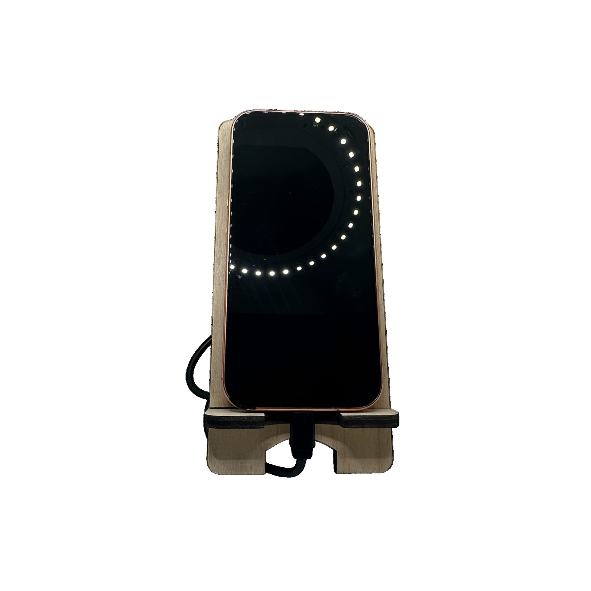 Nachhaltiger Handyständer aus Fichtenholz – personalisiert mit Gravur