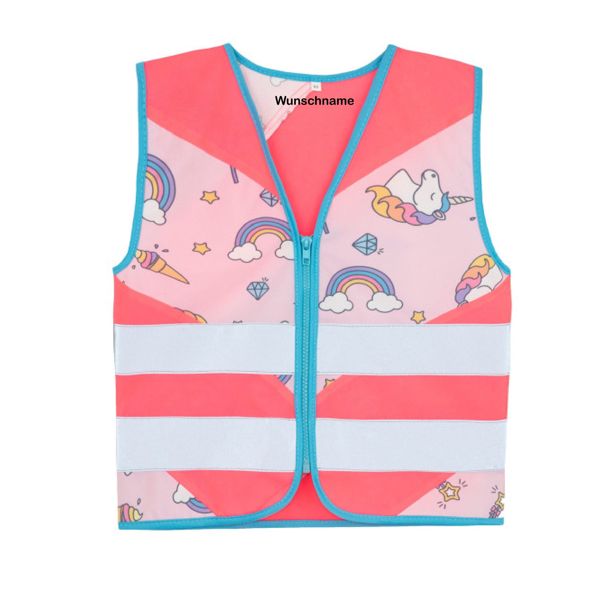 Kinder-Warnweste mit Namen Aufdruck Wunschnamen - Funktionsweste - UNICORN Pink