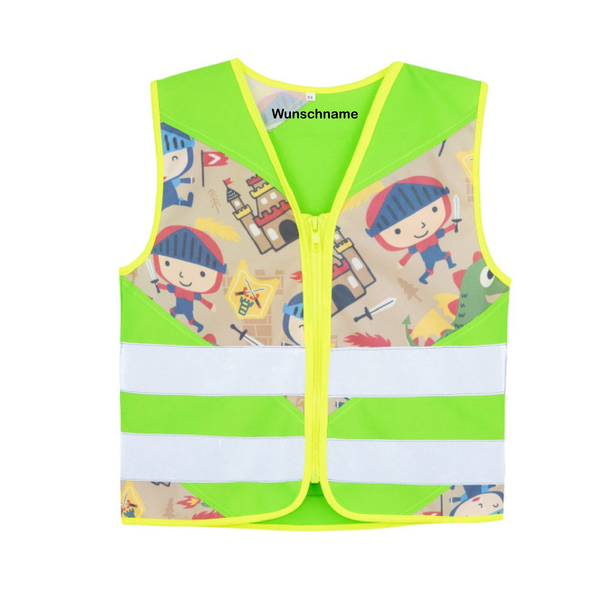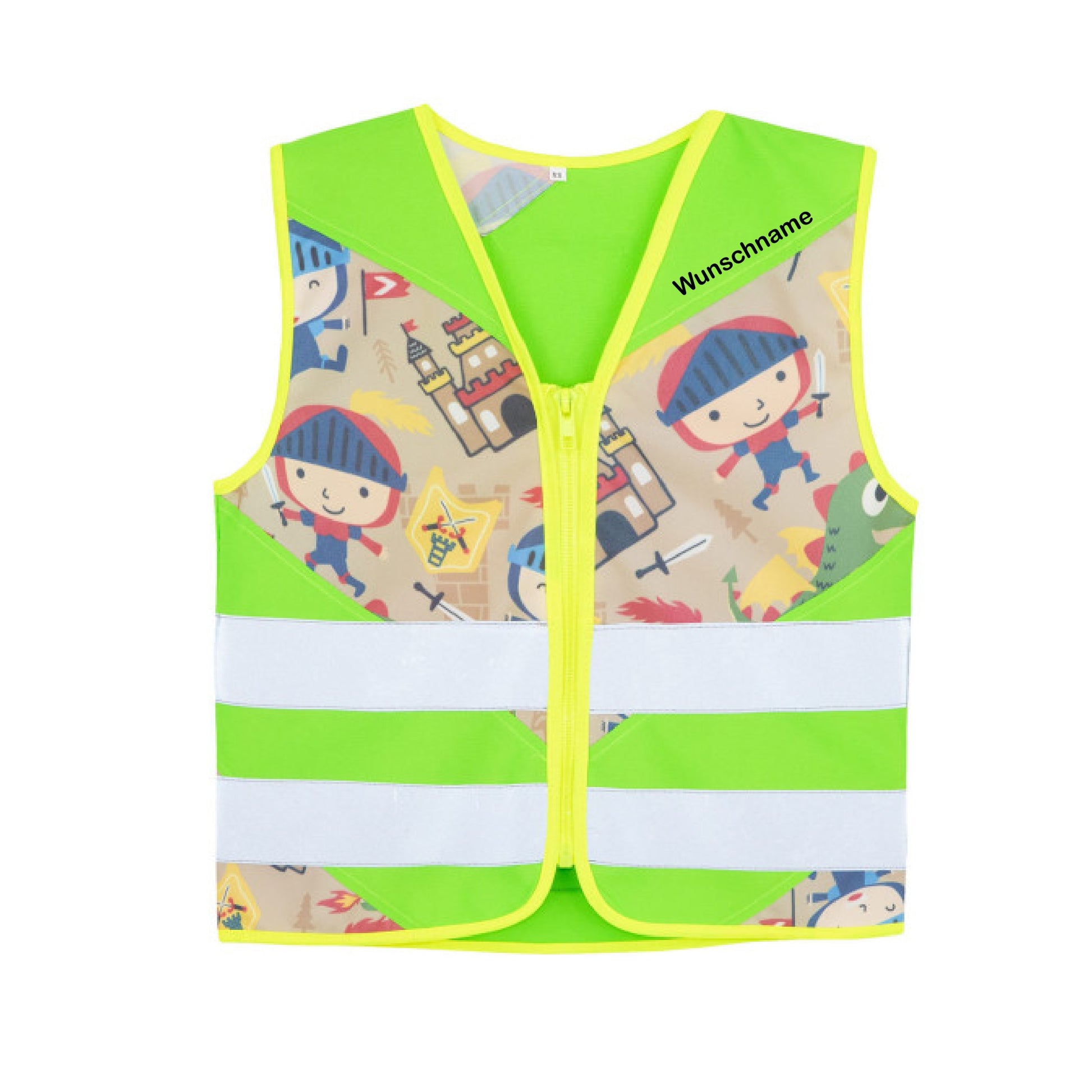 Kinder-Warnweste mit Namen Aufdruck Wunschnamen - Funktionsweste - Ritter Grün